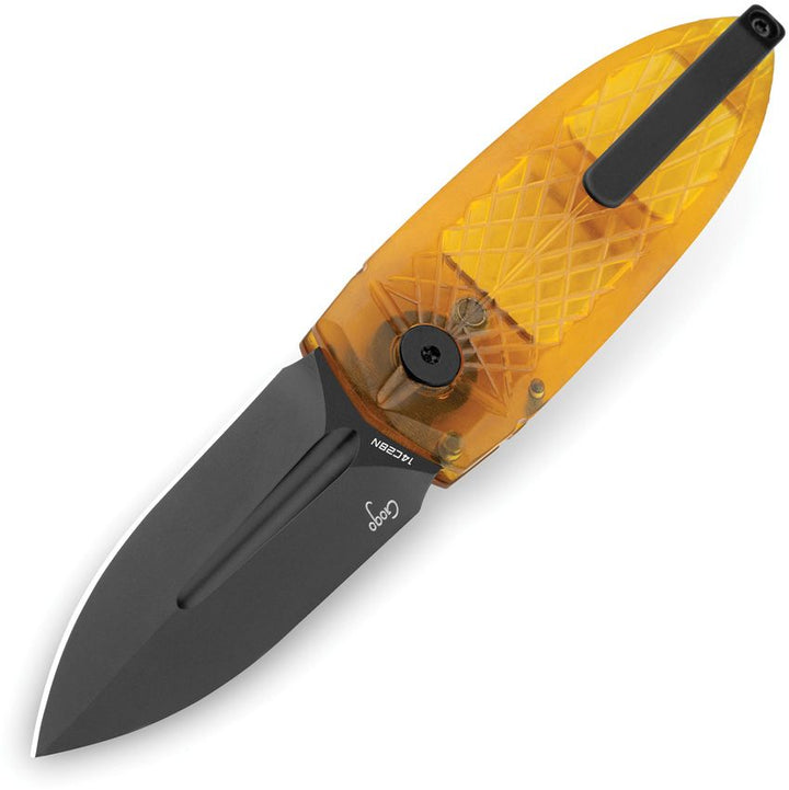 3.25"" (8.26cm) closed. 2.25"" (5.72cm) black DLC coated 14C28N Sandvik stainless spear point blade. Ultem handle. Pocket clip. Boxed.