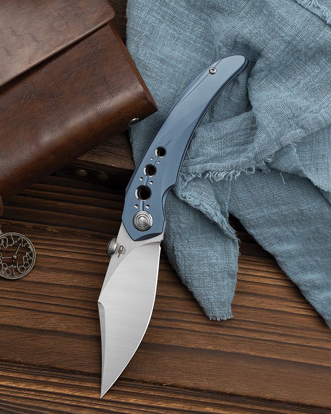 Navaja Bestech Knives Razon Framelock Blue Titanium Satin MagnaCut