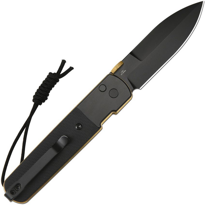 4.13" (10.49cm) closed. 3.13" (7.95cm) black PVD coated AR-RPM9 stainless spear point blade. Black G10 handle. Steel bolster(s). Thumb disk. Lanyard hole. Pocket clip. Black nylon zippered storage case. Boxed.