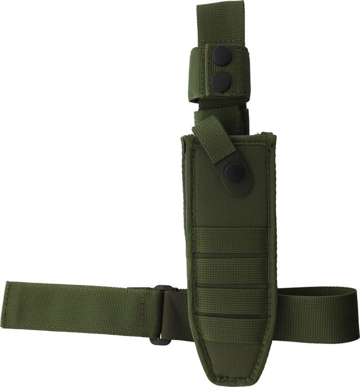 12.5" (31.75cm) overall. 7.25" (18.42cm) blade. Green Forprene handle. Full, extended tang. Lanyard hole. EXP Dark finish Bohler S600 steel blade. Sheath includes leg strap. Green Cordura MOLLE compatible belt sheath. Boxed.