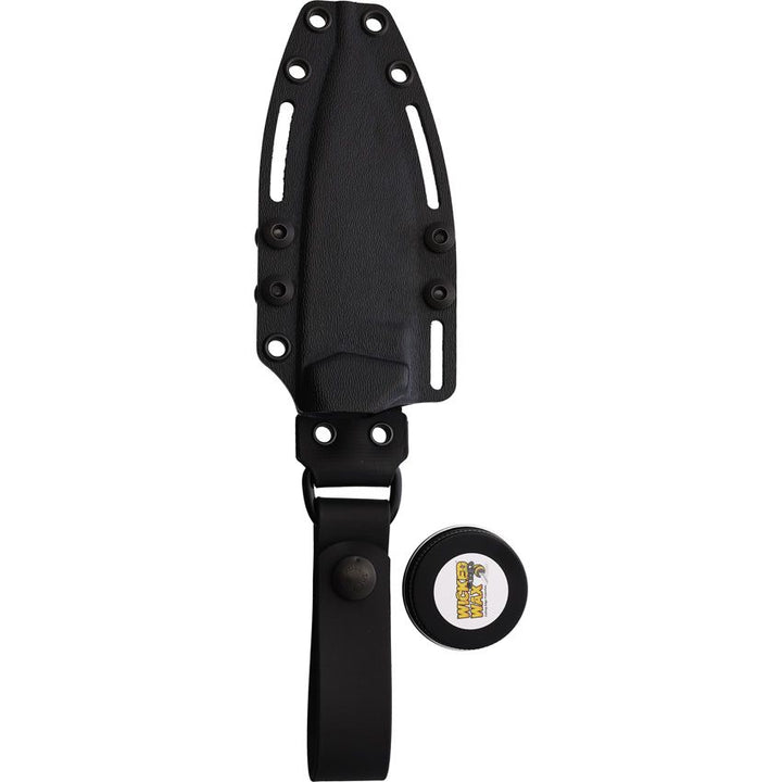 9.75" (24.77cm) overall. 4.25" (10.8cm) gray PVD coated CPM S35VN stainless blade. Black G10 handle with toxic green liners. Full, extended tang. Lanyard hole. Thumb pull. Includes small tin of Wicked Wax. Black Kydex belt sheath. Boxed.