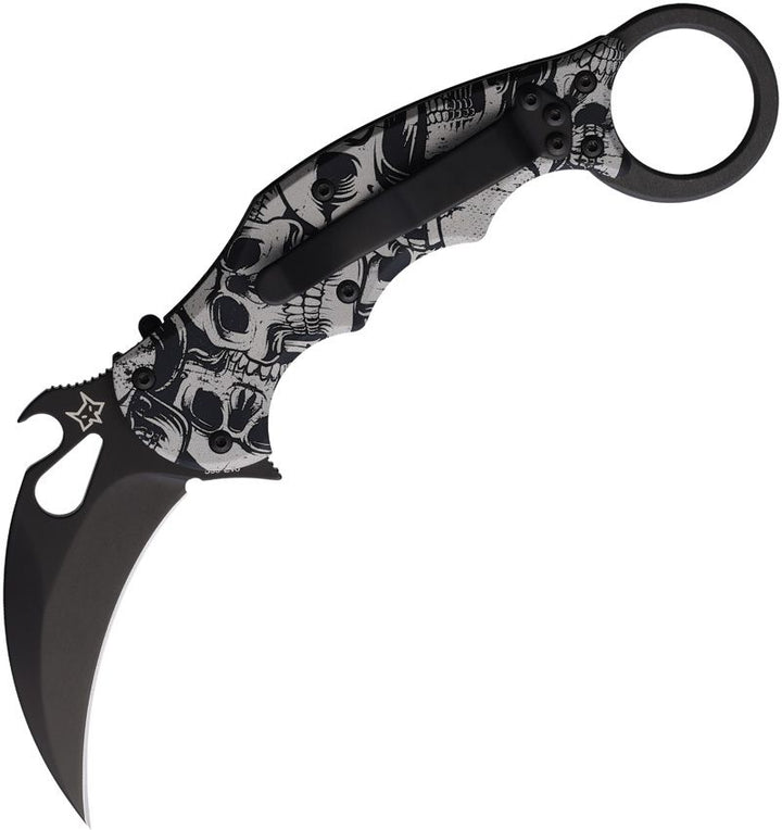 Karambito FOX Karambit Linerlock Skull Artwork Black Aluminum Coated Bohler N690