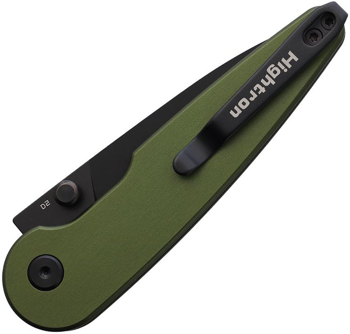 Navaja HIGHTRON Birdidi Button Lock Green Anodized Aluminum Black PVD Coated D2