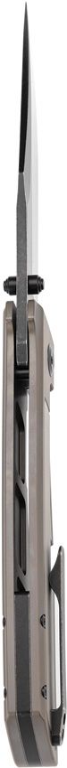 5.25" (13.34cm) closed. 4.25" (10.8cm) BlackWash finish CPM S35VN stainless bowie blade. Bronze and gray stonewash finish titanium handle. Thumb stud. Pocket clip. Black nylon zippered storage case. Boxed.