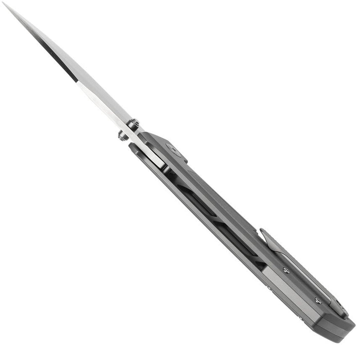 Navaja Kansept Knives Bison Framelock Gray Frag Pattern Titanium Satin Bowie CPM S35VN