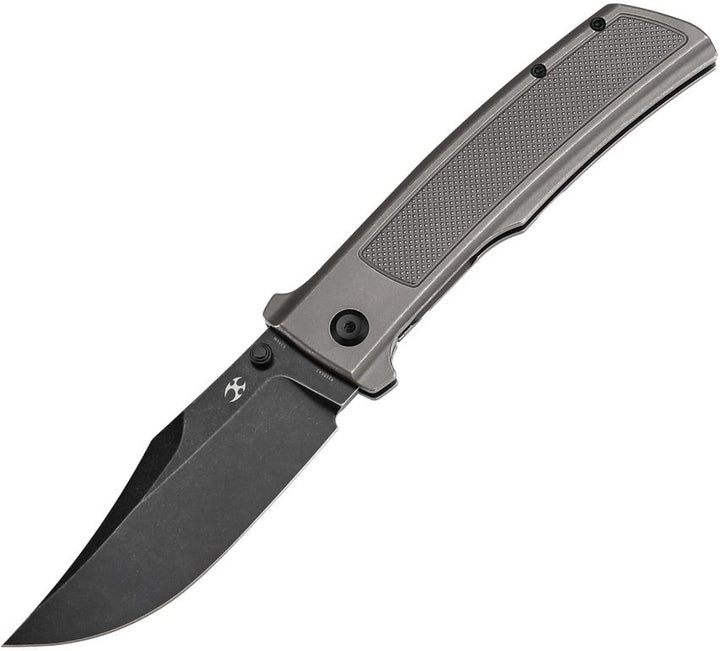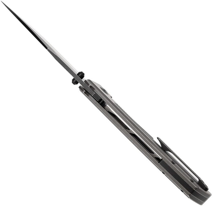 Navaja Kansept Knives Bison Framelock Gray Stonewash Frag Pattern Titanium BlackWash Bowie CPM S35VN
