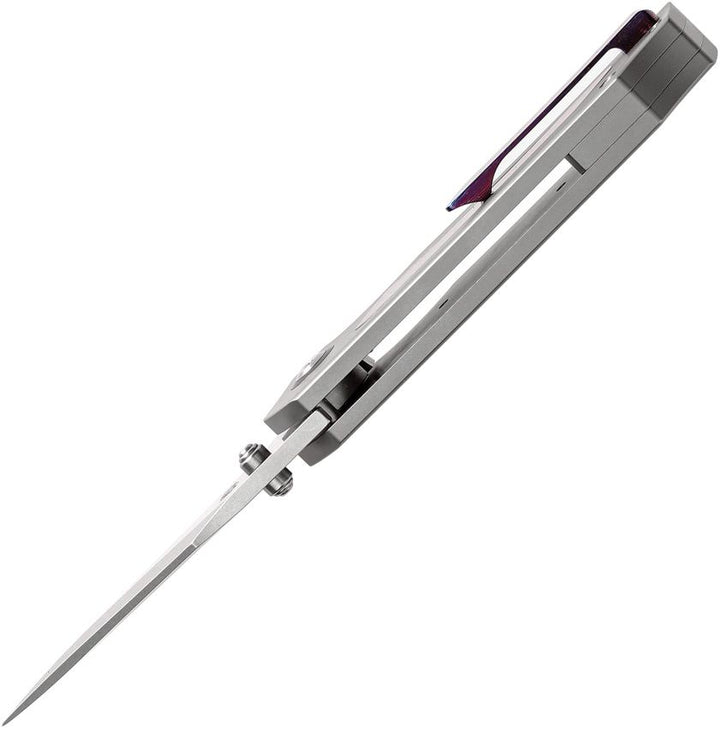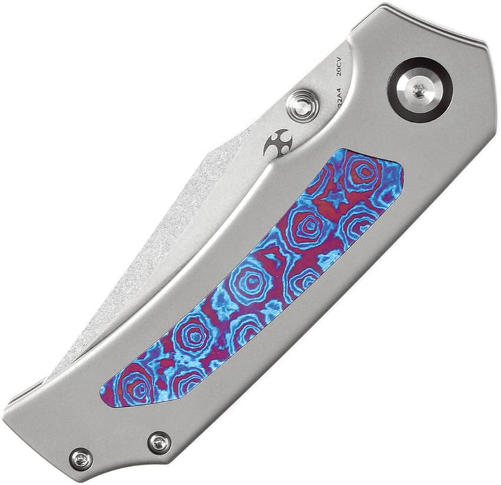 Navaja Kansept Knives Fermi Gray Titanium w Timascus Inlay Stonewash Recurve CPM-20CV
