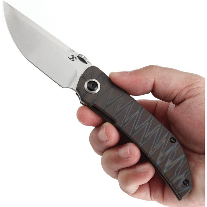 Navaja Kansept Knives Tarkin Framelock Flame Anodized Titanium Satin Tanto CPM-20CV