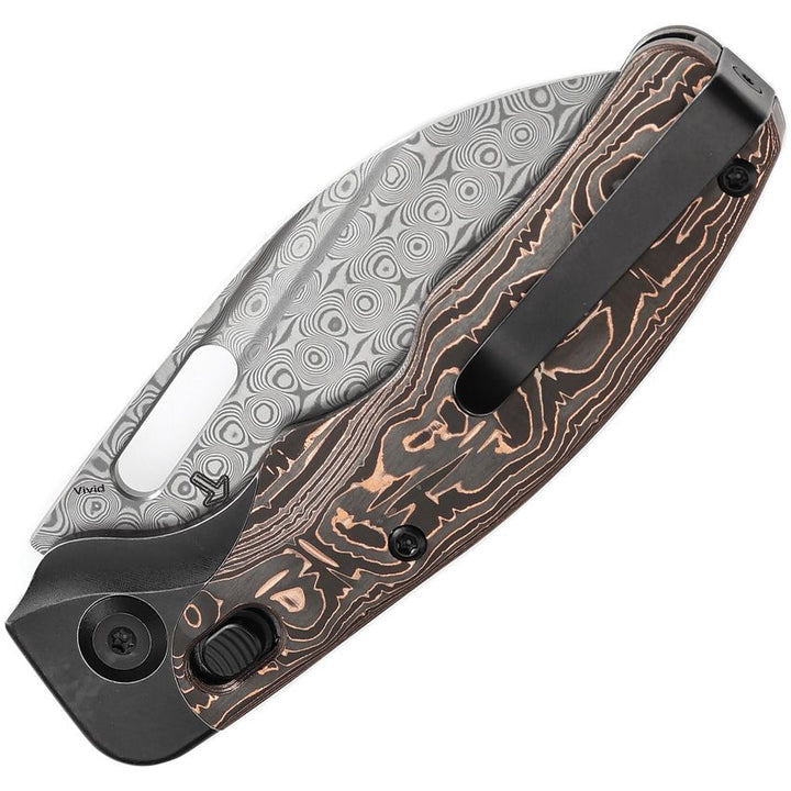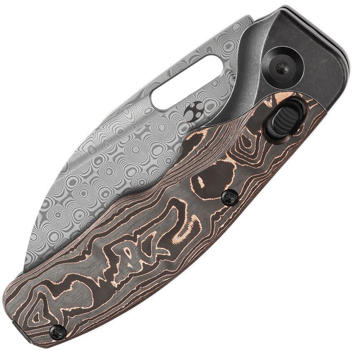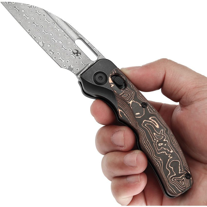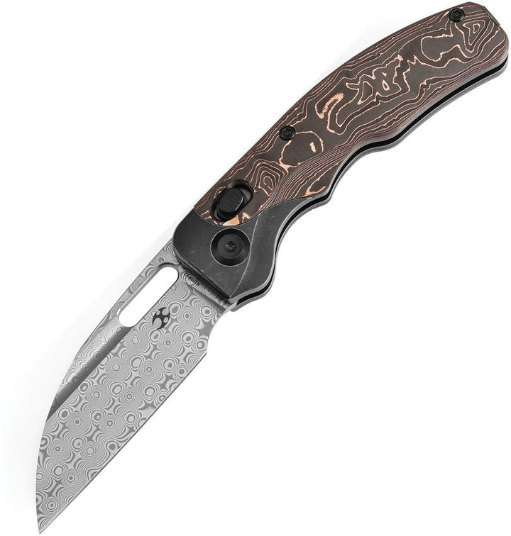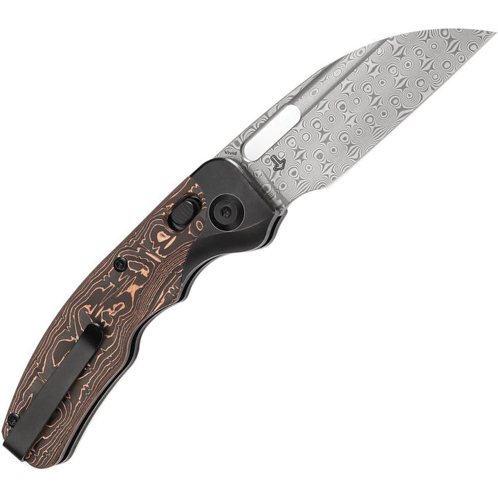 Navaja Kansept Knives Vivid Crossbar Lock Copper CF Wharncliffe Damascus