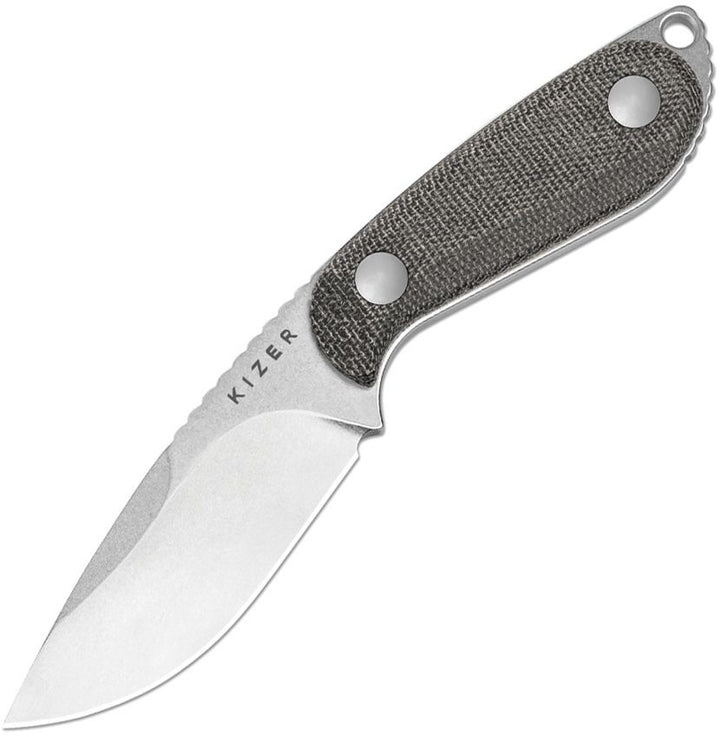 Cuchillo Kizer Cutlery Buddy Fixed Blade Black Canvas Micarta Stonewash 14C28N Sandvik