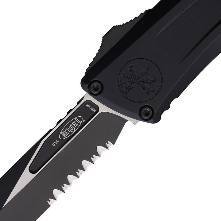 Navaja Automatica Microtech Auto Combat Troodon Gen III Black Aluminum Two Tone Bowie P/Serrated Bohler M390MK