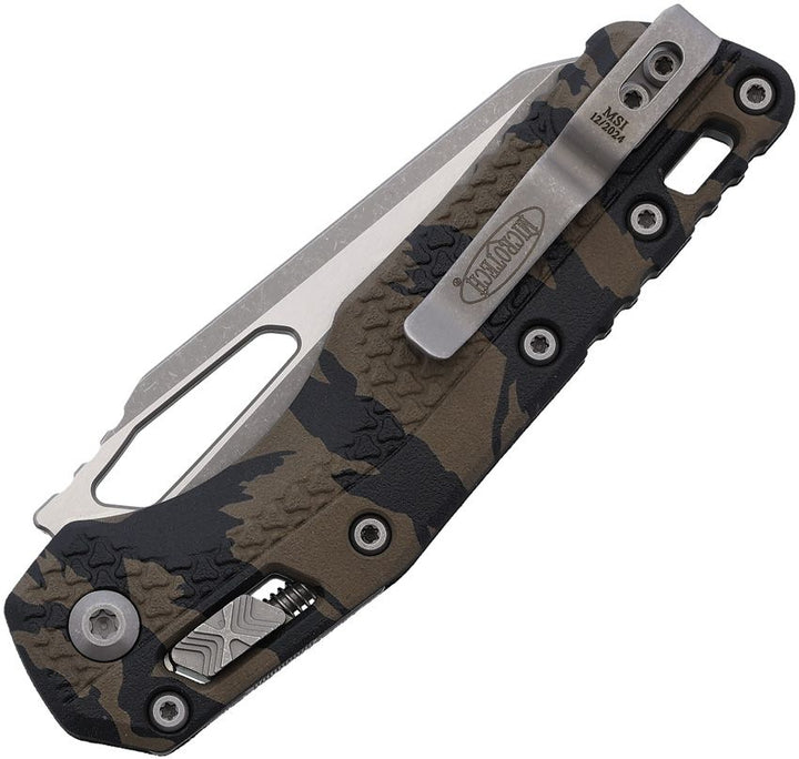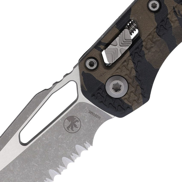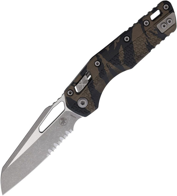Navaja Microtech MSI Ram-Lok Tiger Striped Tri Grip Apocalyptic P/Serrated Sheepsfoot Bohler M390MK