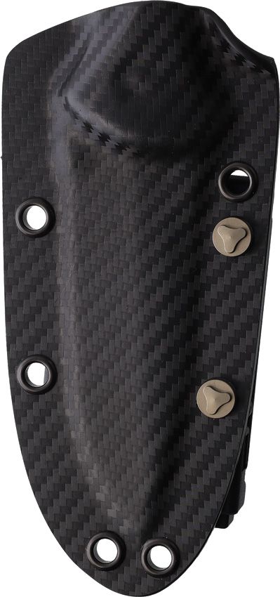 8.17" (20.75cm) overall. 3.75" (9.53cm) black DLC coated premium steel blade. Carbon fiber handle. Full, extended tang. Lanyard hole. Black Kydex belt sheath. Boxed.
