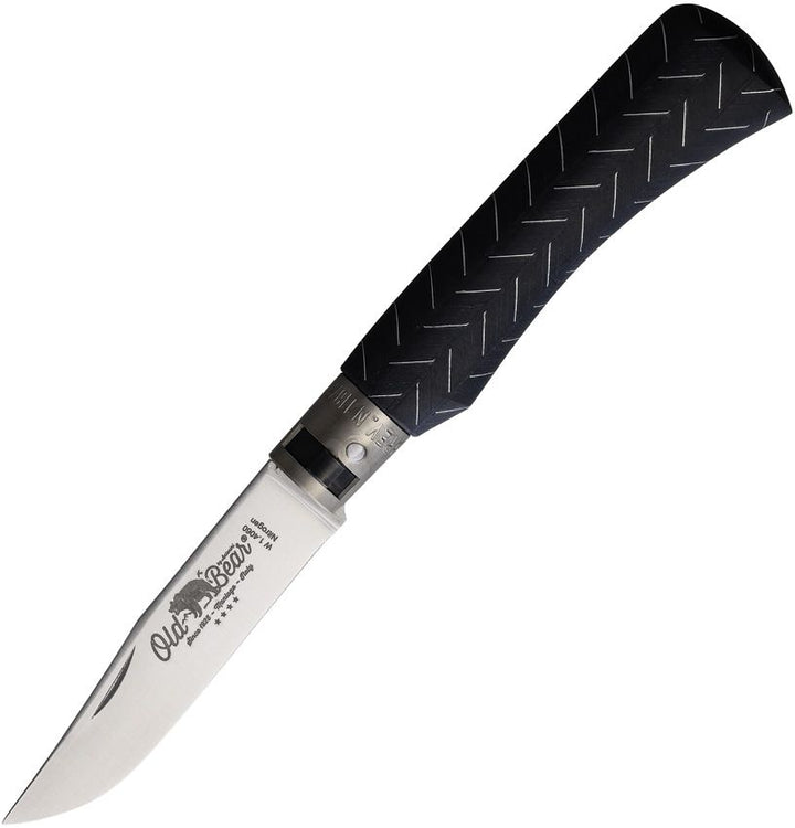 Navaja Old Bear Medium Locking Ring Black Laminated Wood Satin 1.4060 stainless