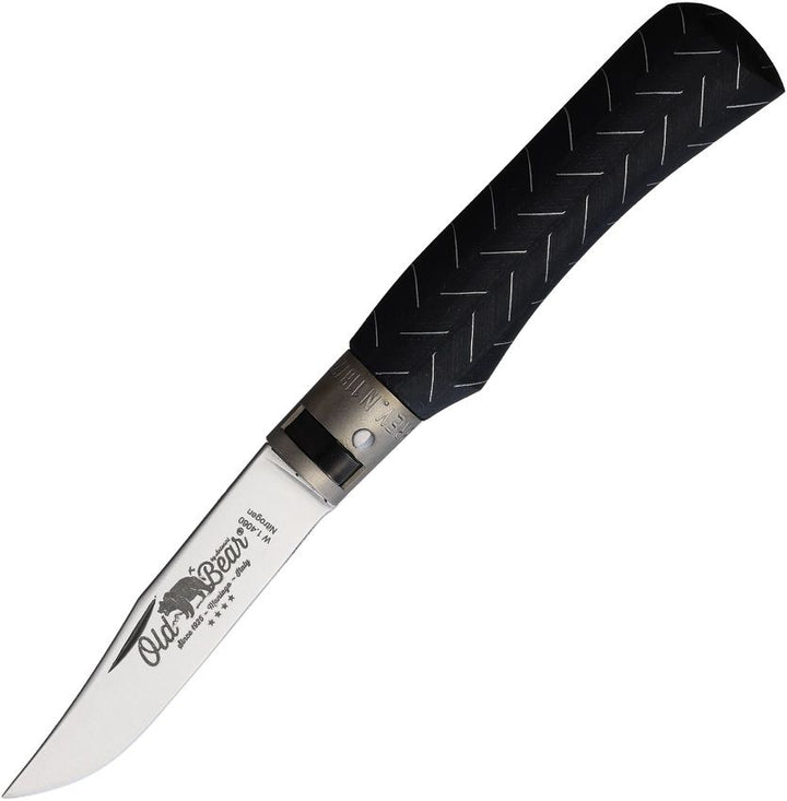 Navaja Old Bear Small Locking Ring Black Laminated Wood Satin Clip Point 1.4060 stainless