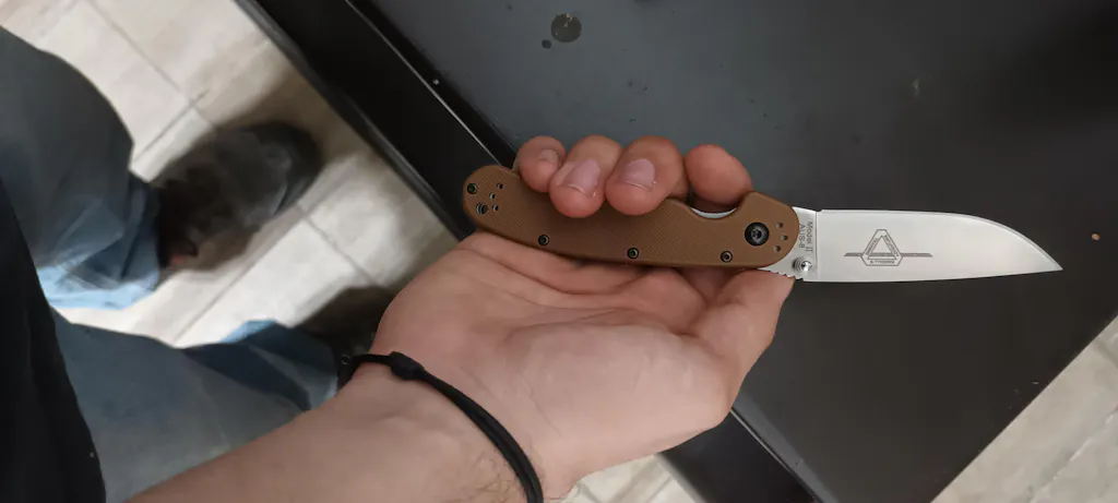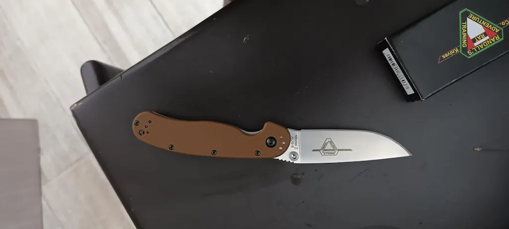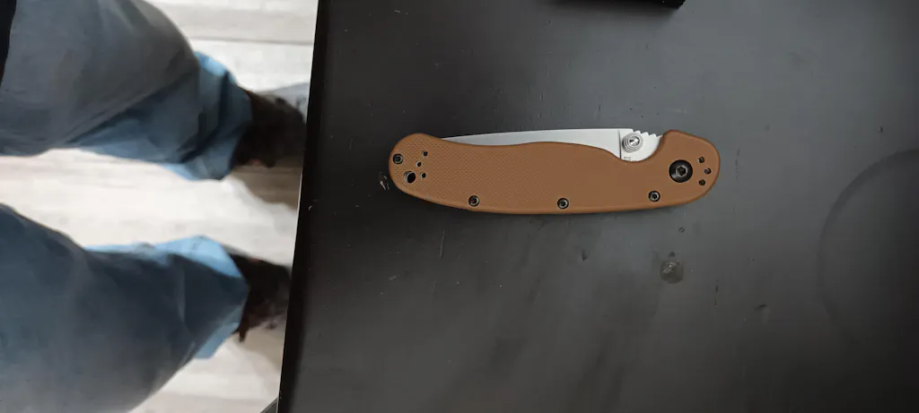 4" closed linerlock. 3" AUS-8 stainless satin finish blade with dual thumb studs and thumb ridge. Textured coyote brown nylon handles. Lanyard hole. Four-way reversible black finish stainless pocket clip.