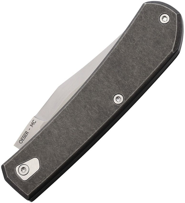 3.88" (9.86cm) closed. 2.88" (7.32cm) satin finish MagnaCut steel clip point blade. Black stonewash finish titanium handle with Red G10 inlay. Boxed.