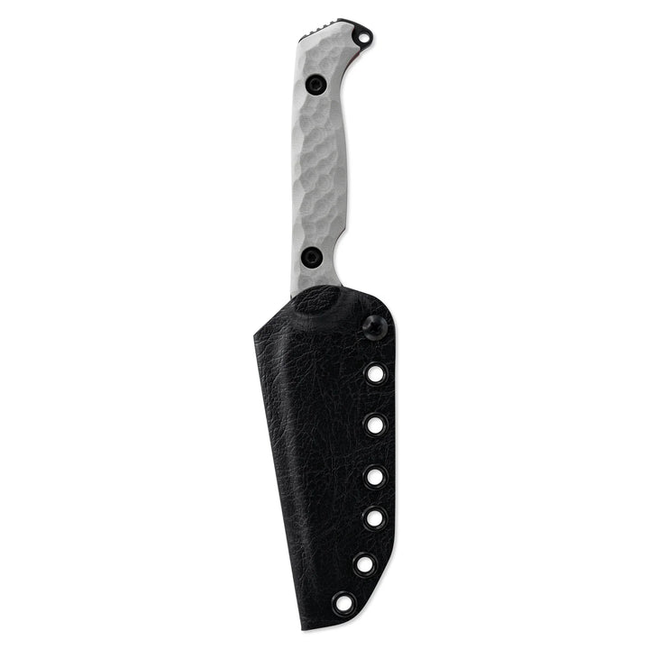 8.5" (21.59cm) overall. 4.25" (10.8cm) black Gun-Kote finish sawback CPM S35VN stainless tanto blade. Light gray sculpted G10 handle. Full, extended tang. Lanyard hole. Red G10 liners. Serialized. FlexTech Kydex belt sheath. Boxed.