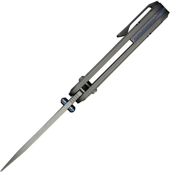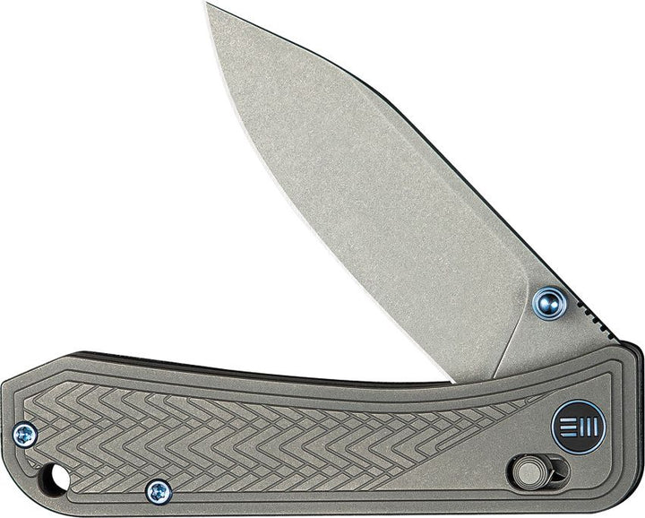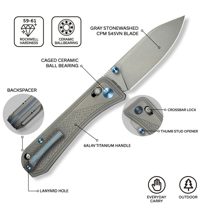 Navaja We Knife Co Ltd Bougie Banter Crossbar Lock Gray 6AL4V Titanium Stonewashed Modified Drop Point CPM S45VN