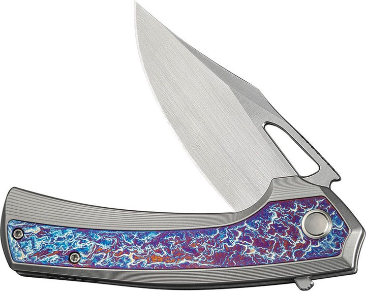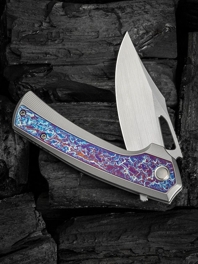 Navaja We Knife Co Ltd Nefaris Framelock Polished Bead Blasted Flamed 6AL4V Titanium Hand Rubbed Satin CPM-20CV