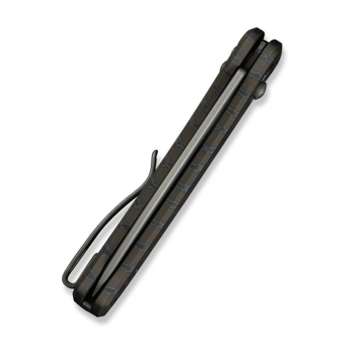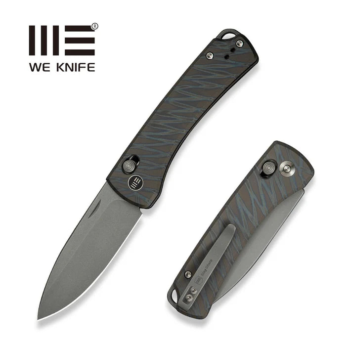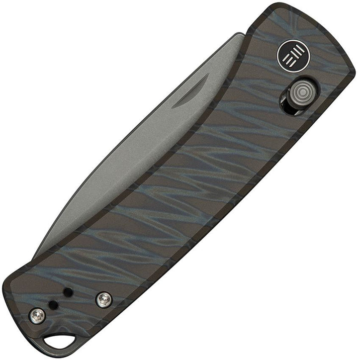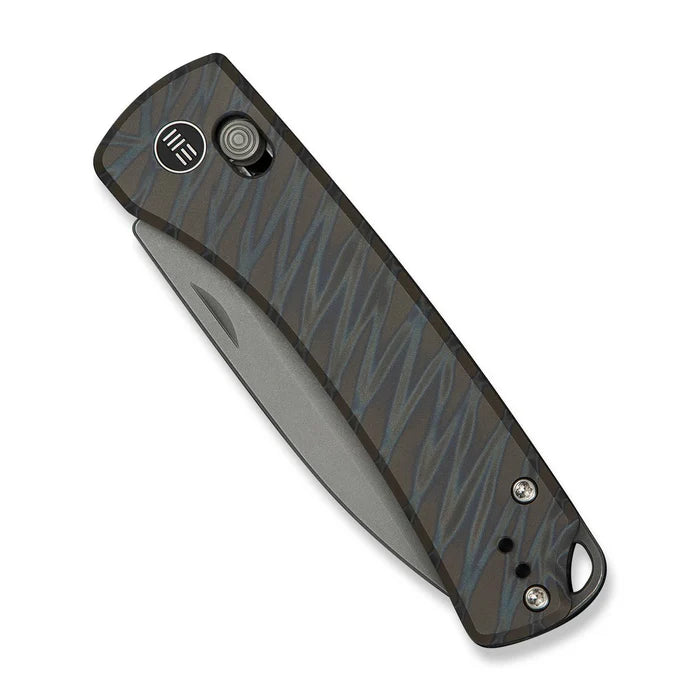 Navaja We Knife Co Ltd Nightblade Crossbar Lock Tiger Stripe Pattern Flamed 6AL4V Titanium Gray Stonewashed Drop point CPM 20CV