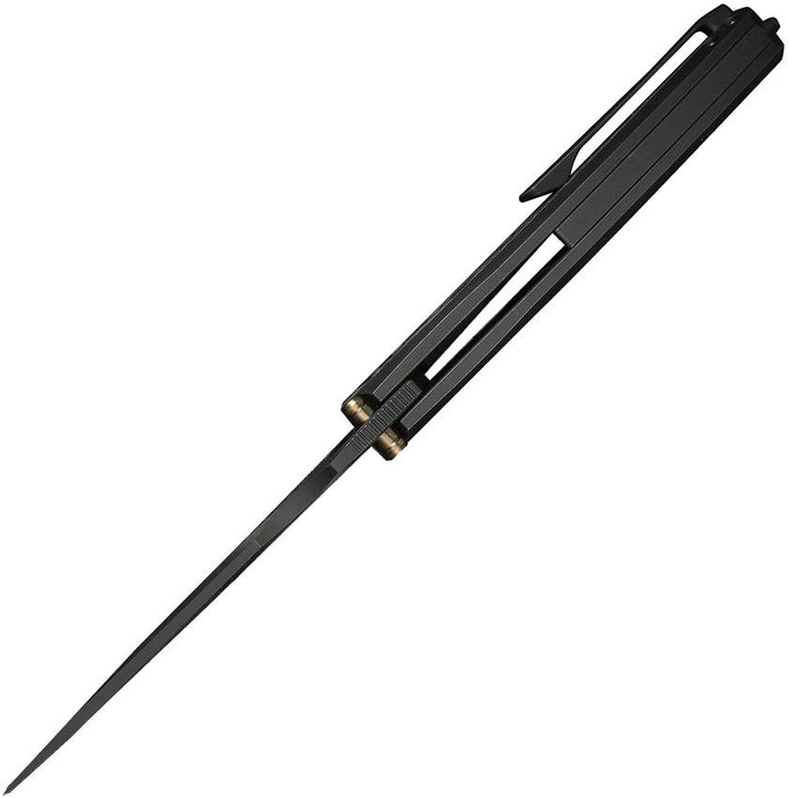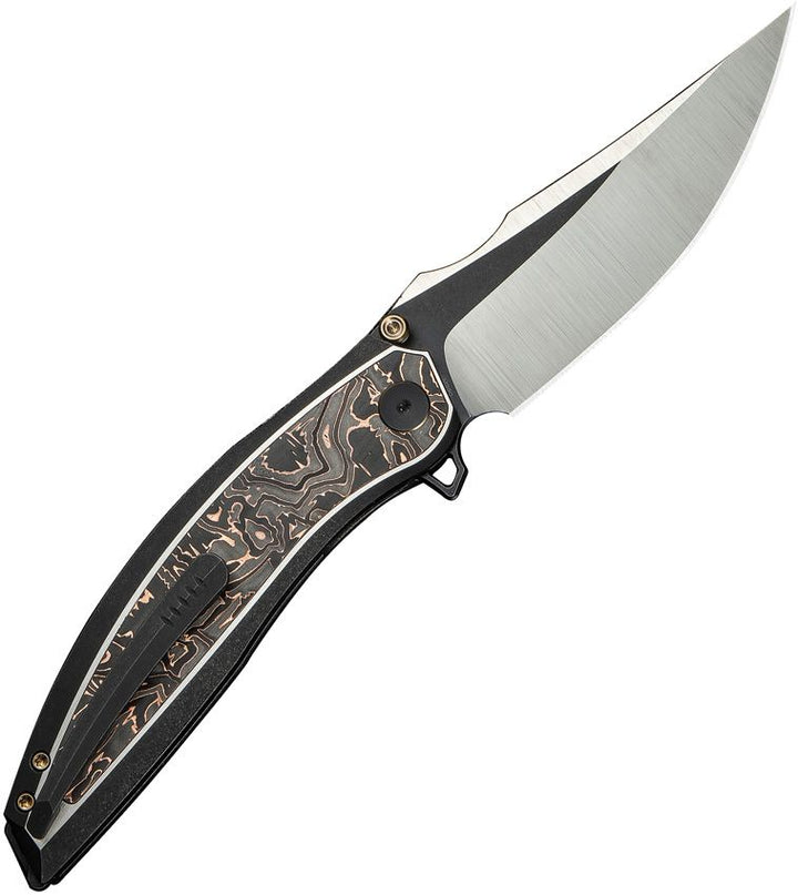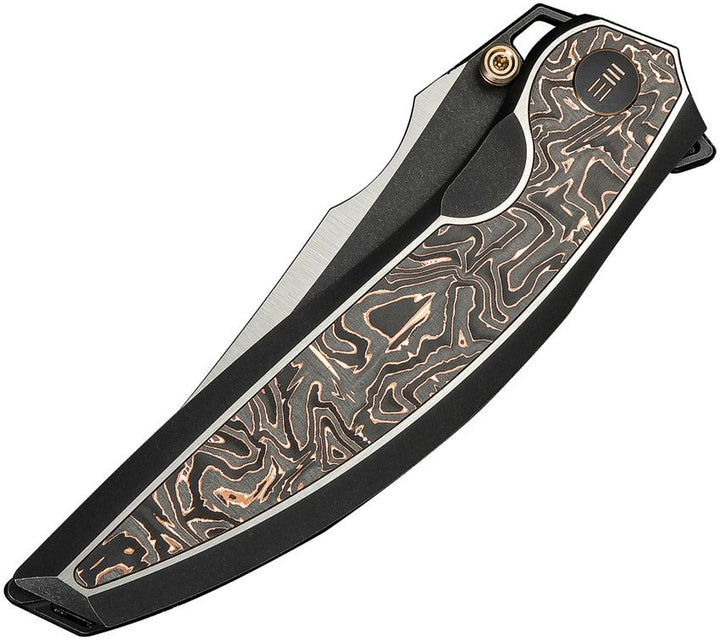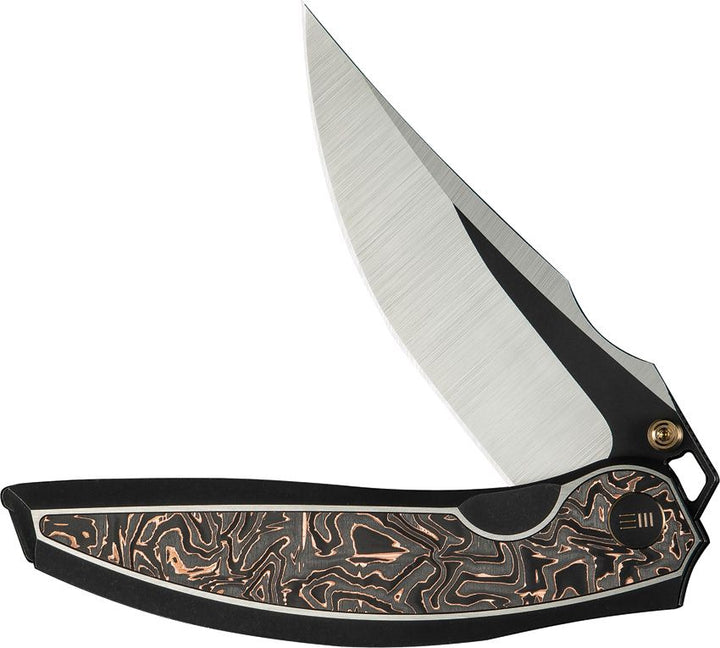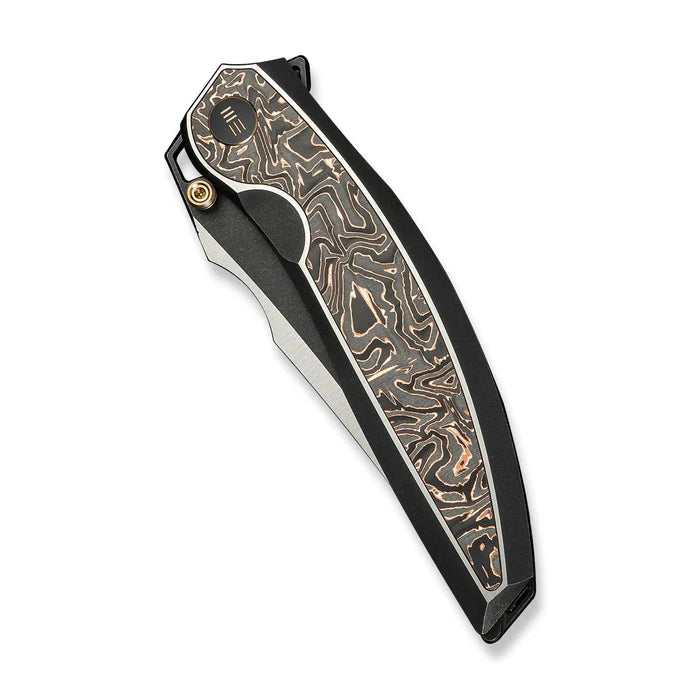 Navaja We Knife Co Ltd Quinseris Nested Frame Lock 6AL4V Titanium w Copper Foil CF Inlay Hand Polished Satin, Black SW Bohler M390