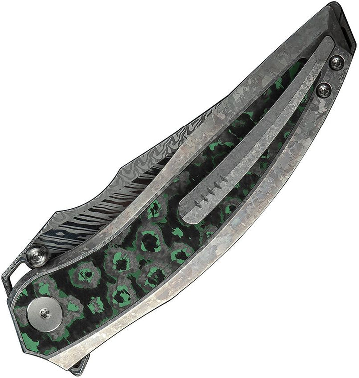 Navaja We Knife Co Ltd Quinseris Nested Frame Lock 6AL4V Titanium w Jungle Wear Fat CF Inlay Damasteel (Fafnir)