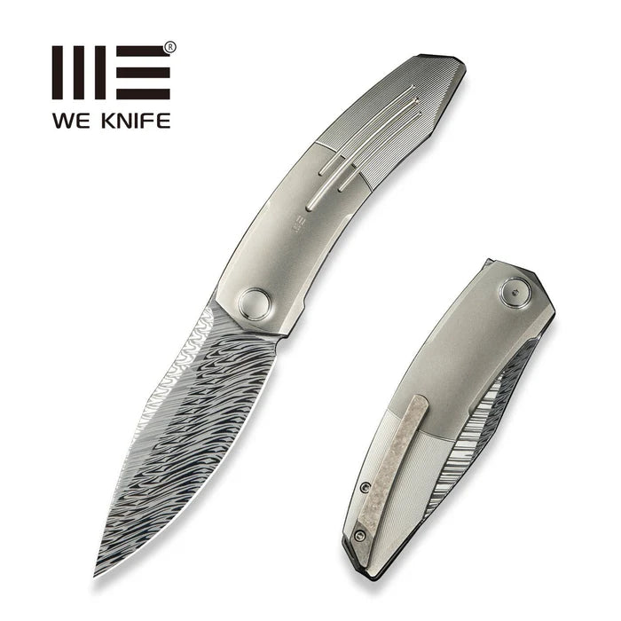 Navaja We Knife Co Ltd Sine Wave Nested Linerlock Polished Bead Blasted, Satin 6AL4V Titanium Damasteel (Fafnir)