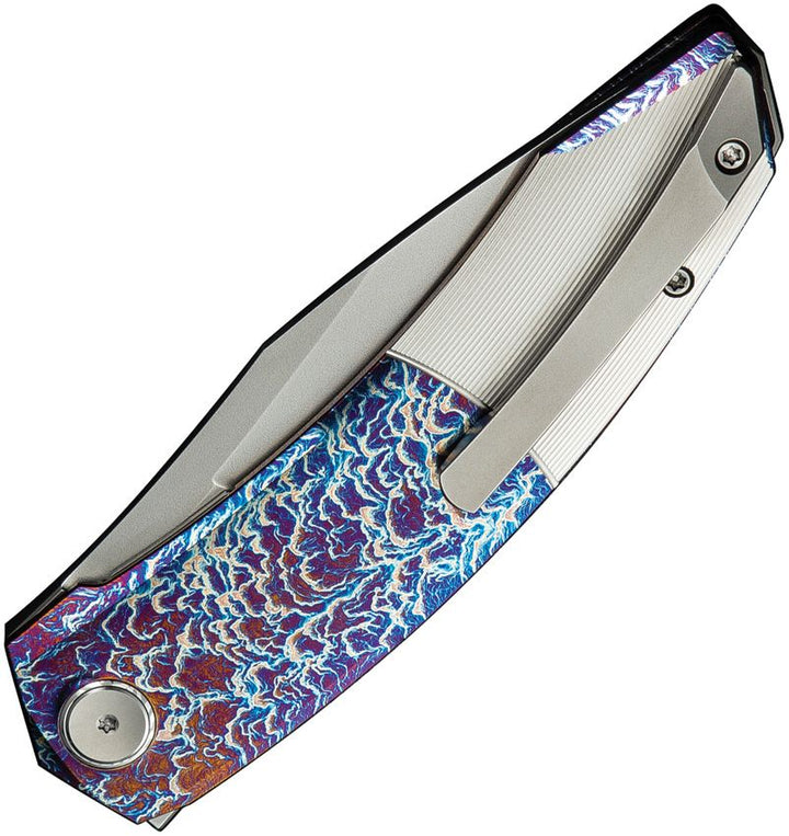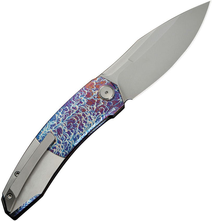 Navaja We Knife Co Ltd Sine Wave Nested Linerlock Flamed, Satin 6AL4V Titanium Polished Bead Blasted Bohler M390