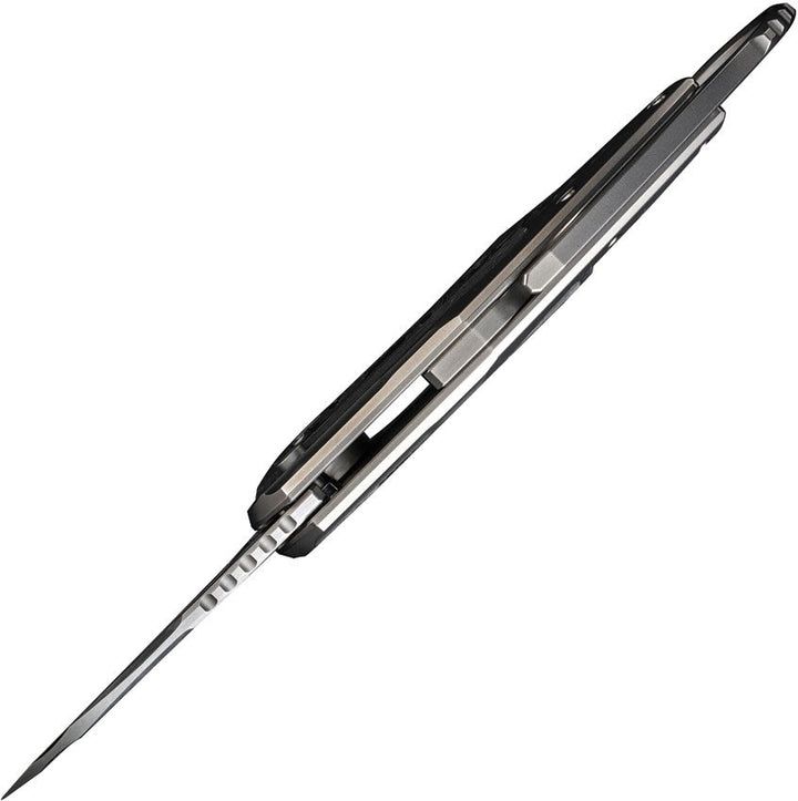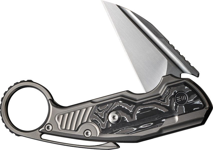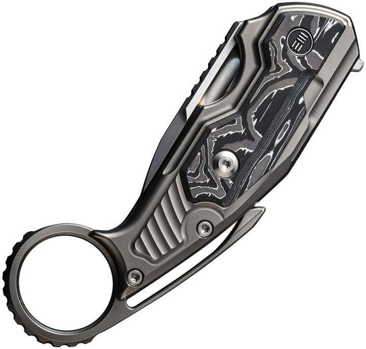 Navaja We Knife Co Ltd Yardbird Button Lock 6AL4V Titanium w Aluminum Foil Carbon Fiber Inlay Hand Rubbed Satin Wharncliffe CPM 20CV