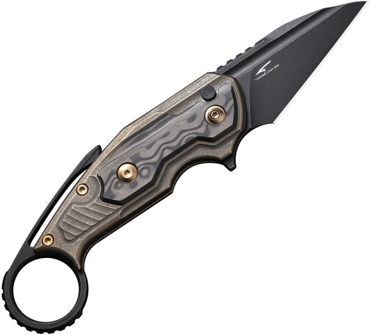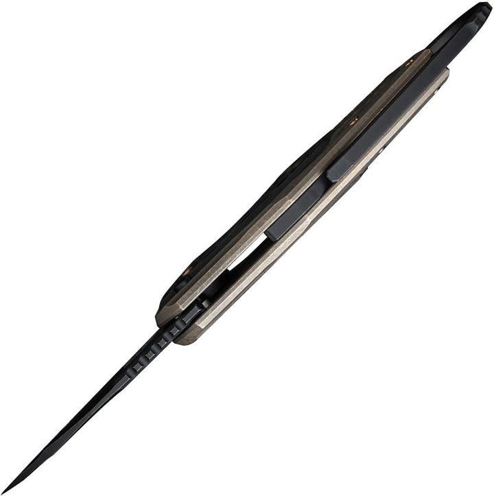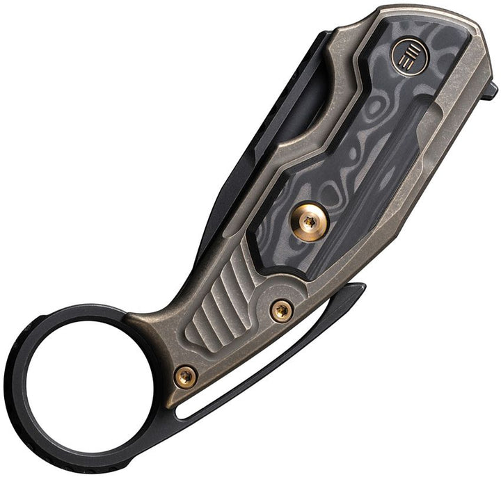 Navaja We Knife Co Ltd Yardbird Button Lock Bronze, Black 6AL4V Titanium w Rose Carbon Fiber Inlay Black Stonewashed Wharncliffe CPM 20CV