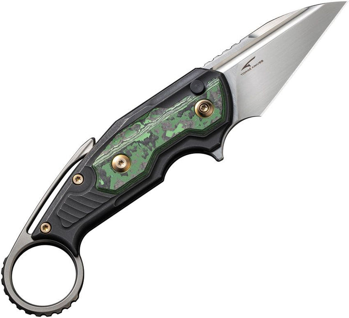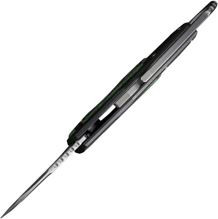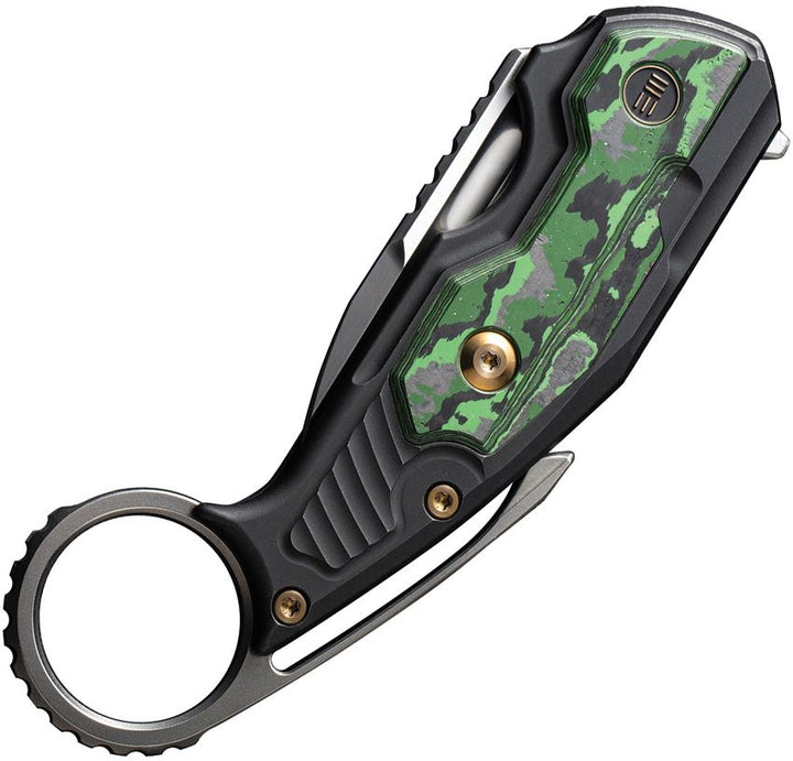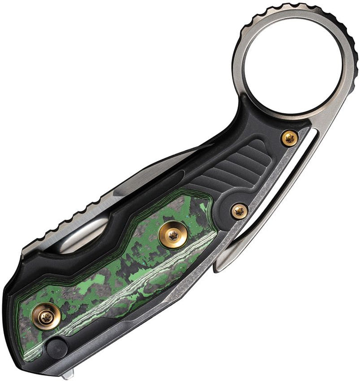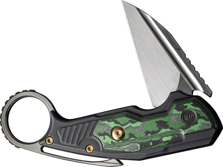 Navaja We Knife Co Ltd Yardbird Button Lock 6AL4V Titanium w Jungle Wear Fat Carbon Fiber Inlay Hand Rubbed Satin Wharncliffe CPM 20CV